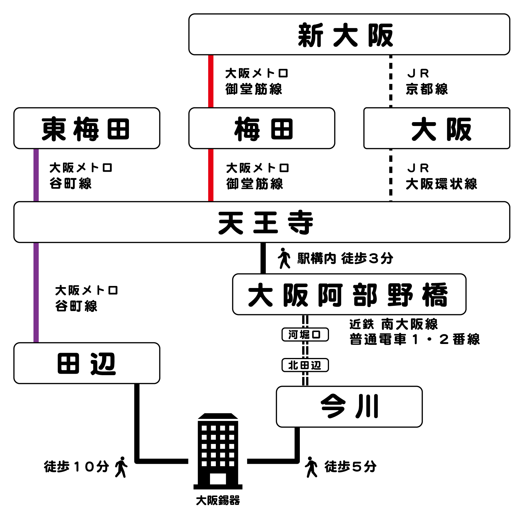 地下鉄谷町線 田辺駅からのアクセス