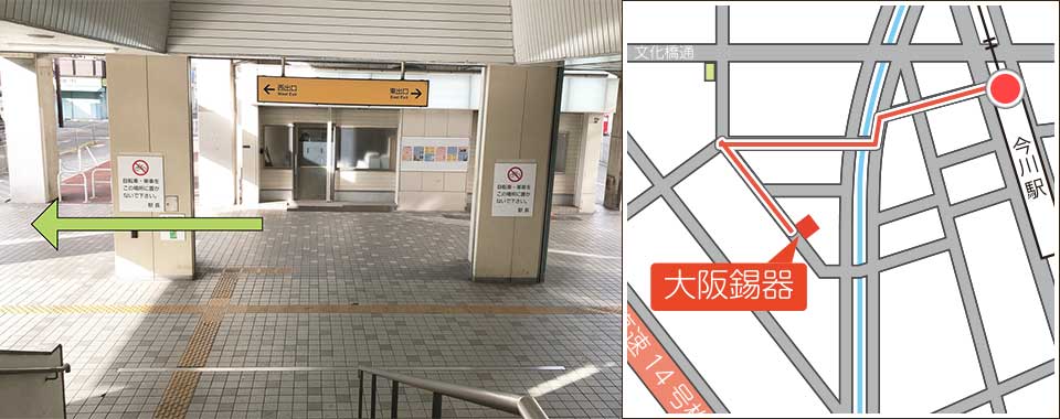 改札を出て階段を降りたら左に曲がって下さい
