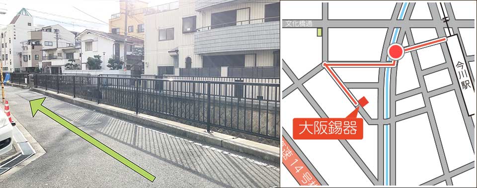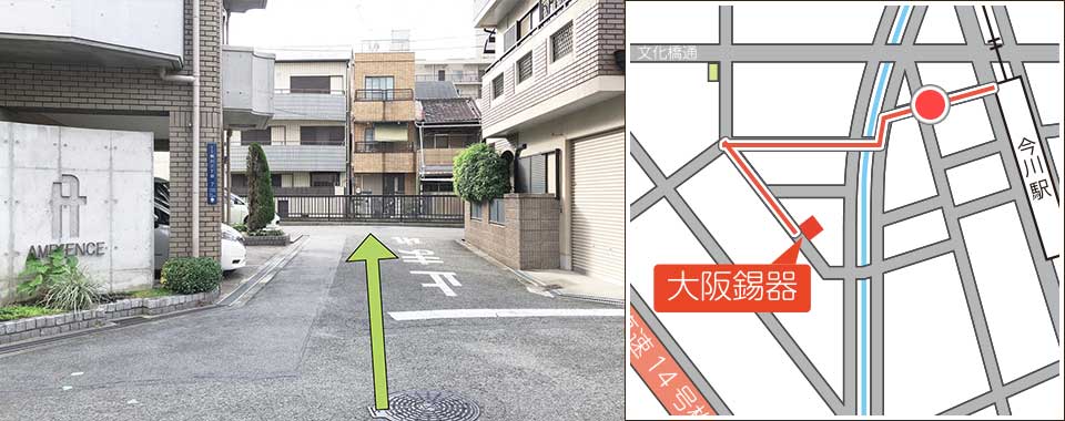 真っ直ぐ歩くと左手に会社が見えてきます